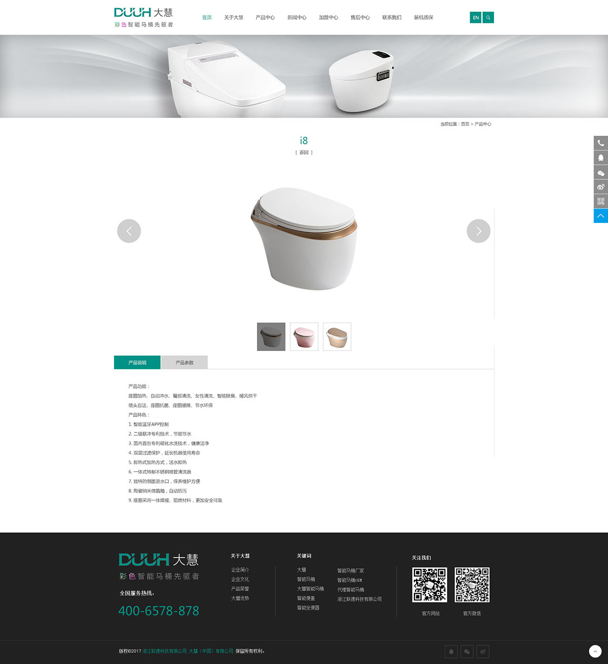 大慧智能衛(wèi)浴 隸屬于浙江聯(lián)德科技有限公司,成立于21世紀(jì)初,是一家專業(yè)研發(fā)、 生產(chǎn)和銷售一體化服務(wù)體系的智能坐便器及相關(guān)衛(wèi)浴產(chǎn)品的高新技術(shù)企業(yè)。