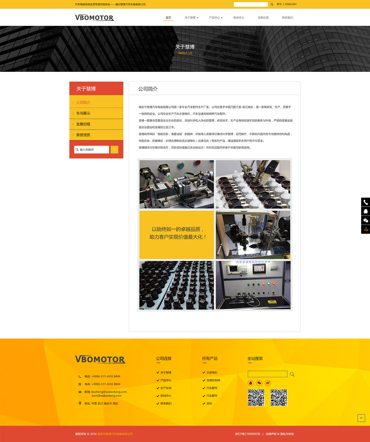 瑞安市慧博汽車電器有限公司是一家專業(yè)生產(chǎn)步進(jìn)電機(jī),怠速控制閥及開發(fā)制造其他汽車配件的廠家。公司坐落于中國汽配之都-浙江瑞安,是一家集研發(fā)、生產(chǎn)、貿(mào)易于一體的的企業(yè)。