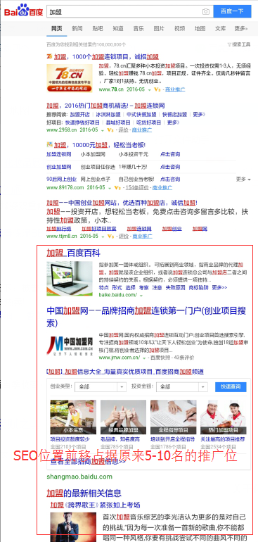 再看SEO的排名位置,上升到了之前百度第5-10的推廣位: